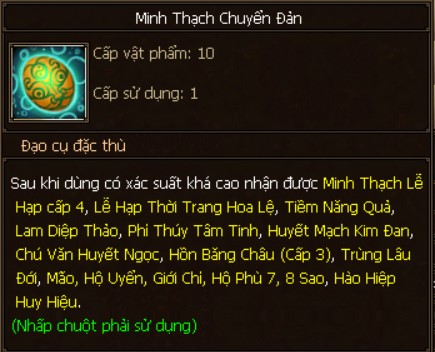 Ngoài ra bằng hữu có cơ hội nhận được: Tiềm Năng Quả, Lam Diệp Thảo, Phỉ Thúy Tâm Tinh, Nguyên Chú Kim Phù, Tiềm Năng Quả, Lam Diệp Thảo, Trùng Lâu Đới, Mão, Hộ Uyển, Giới Chỉ, Hộ Phù 7 - 8 sao.,...